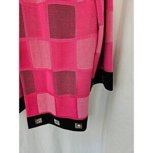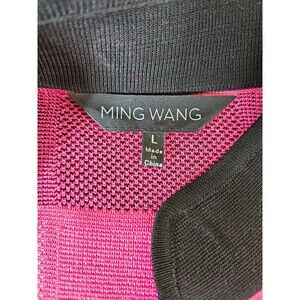 Vtg Ming Wang Color Block Pink Black Knit Cardigan Sweater Mandarin 3/4 Sleeve L