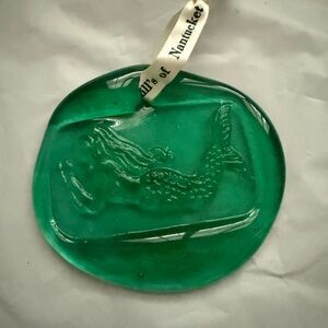 Beautiful green glass ornament featuring a mermaid design. Perfect for decoration.