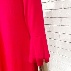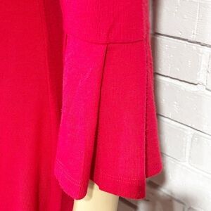 Chic knit red dress with stylish bell sleeves. Length 37.” Armpit to armpit measurement lying flat 19.” This typically corresponds to a Medium (M) size. Perfect for any occasion.