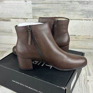 Naturalizer Women’s 11 Brown Leather Heeled Ankle Boot Weatherproof Bootie NWT