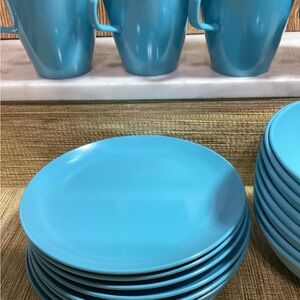 Vintage Melamine Vibrant Blue Dinnerware Set Bowls Dessert Plates ,Mugs