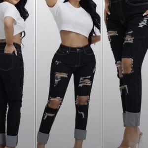 HIGH Waisted Distressed Stretch Curvy Ankle Length FRAYED Jeans