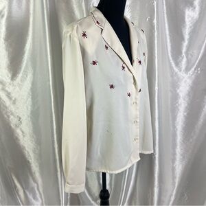 Vintage Embroidered Cream Button Down Shirt | Size 10 | Cottagecore Academia
