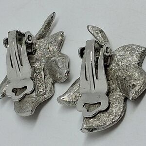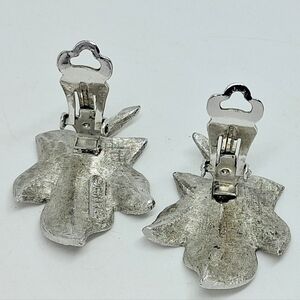 * Vintage Signed Charel Silver Tone Leaf Clip On Earrings