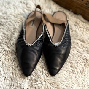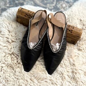 Miu Miu crystal embellished leather slingback ballet flats pointy Authentic 7.5