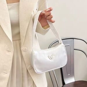 Butterfly Charm Nylon Shoulder Bag Purse in White | NWT