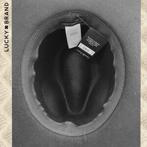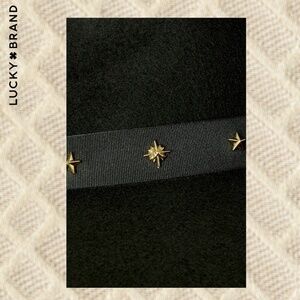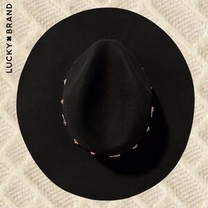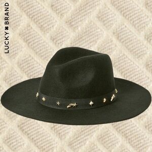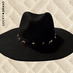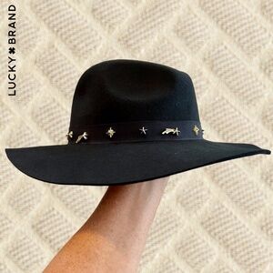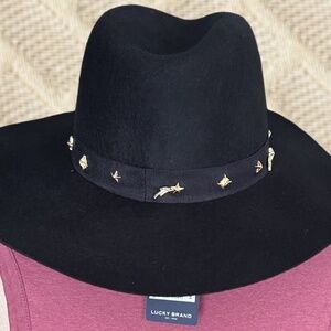 LUCKY BRAND (NWT) 100% WOOL Gold-Charm-Accented Band Black Wide Brim Ranger Hat
