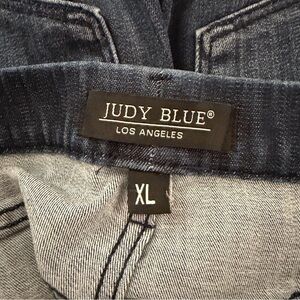 Size XL Judy Blue pull-on, elastic waist jean shorts with dolphin hem. Cotton/rayon/polyester/lycra.