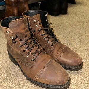 Rugged leather boots with lace-up design. Perfect for versatile wear. Durable and stylish.