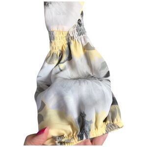 Seoni Yellow and Gray Floral Long Sleeve V-Neck Blouse Top Size M