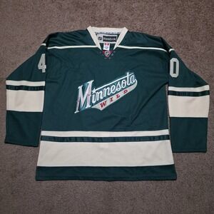 The Reebok Minnesota Wild Devan Dubnyk #40 NHL Jersey is a green unisex adult size 52 XL jersey featuring the official fight strap of the Minnesota Wild. This officially licensed NHL apparel is perfect for hockey fans looking to show their support for the team and player. Made by Reebok, this jersey is designed for comfort and style, making it a must-have for any hockey enthusiast.
