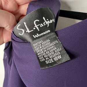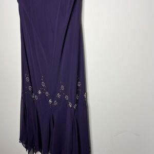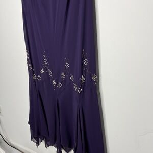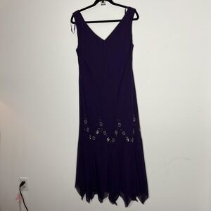 S.L. Fashions Dress Womens 18W Purple Beaded Chiffon Handkerchief Hem Evening