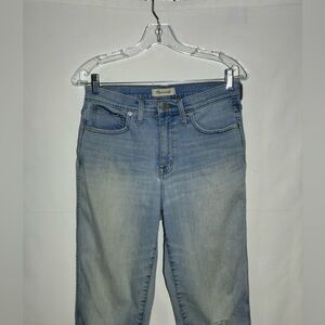 Madewell Stovepipe Jeans Size 28 Light Wash High Rise Straight Leg Raw Hem