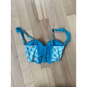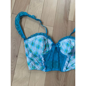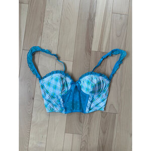 Y2K Victoria’s Secret Bustier Top 36C Blue Plaid Lace Corset