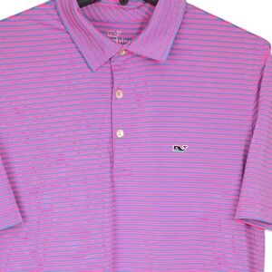 Vineyard Vines Golf Polo Men's Medium Blue Pink Stripe Shirt Short Sleeve Casual