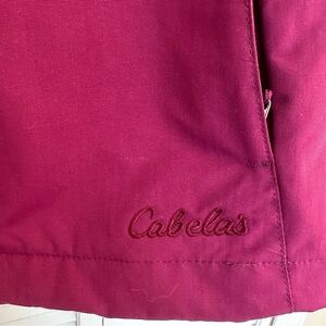 Cabela’s hooded jacket with cozy fleece lining for warmth and comfort. Durable nylon shell with soft interior, full zip front, zippered pockets, and adjustable hood. Classic fit. Great for outdoor wear, casual layering, hiking, travel, or everyday cold weather use.
