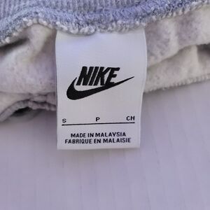 Nike women's shorts in size small, featuring a loose fit and high rise design. The shorts are made of a blended fabric of polyester and cotton, with a solid gray color and a drawstring closure for a personalized fit. They are ideal for activewear occasions, particularly for running and jogging, with an elastic waist, comfortable fabric, and pockets for convenience. Perfect for summer and spring seasons, these athletic shorts are machine washable for easy care and maintenance.