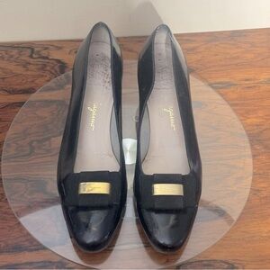 Gorgeous Salvatore Ferragamo Pumps Heel in black Calf Leather, 4cm (A 4 cm heel is approximately 1.57 inches) in vintage used condition. They are very well loved but still wearable due the great quality shoes they are! Made in Italy with Calf leather. High end shoes can easily be resoled and enjoyed for many more years.