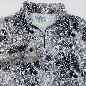 *IBKUL Evie Print 1/4 Zip Pullover Women's Large Black White Mesh Long Sleeves
