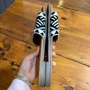 Haute Hippie Black and White Patterned Slide On Sandals Size 9