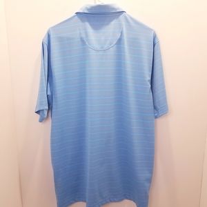Great condition Mens Golf shirt polo. Size Large. Baby blue with orange and white pin stripes.