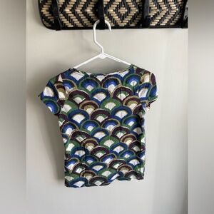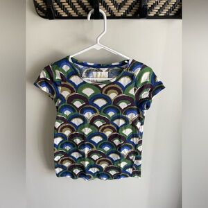 Boden Fan Scallop Print Alyssa Miller Collection Tee Shirt - Blue/Green/Cream - Size 2