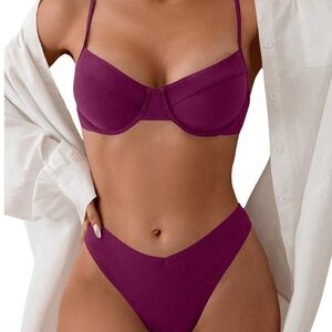 NWT Wine Spaghetti Strap High Cut Push Up Underwire Bikini- XL