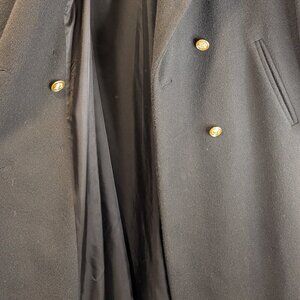 This beautiful condition, 100% wool, made in USA "Forecaster of Boston" brand is a double breasted long coat.