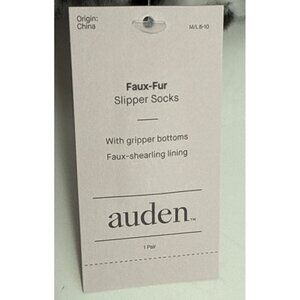 Slip into warmth and comfort with the Women's Faux Fur Cozy Pull-On Slipper Socks with Grippers from Auden™. These pull-on style slippers offer a soft flexible sole, great for lounging at home & easily packable when you're on the go. These soft, plush slippers will keep your feet snug, while the grippers on the bottom add safety on slippery floors. Brand: Auden Size: M/L (8-10) Condition; New with tag Features: • Slipper Socks Size: Womens M/L Condition: New With Tags