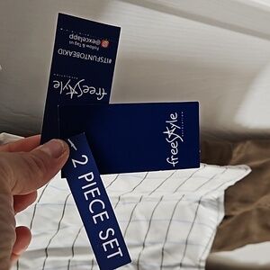 Freestyle 2 Piece Set White Button Down Blue Brown Stripe Sleeve Brown Cargo 5