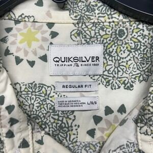 Keywords: Quiksilver shirt, men's shirt, button down shirt, short sleeve shirt, patterned shirt, regular fit, men's casual shirt, summer shirt, vacation shirt, cream shirt, green shirt, Large, L
