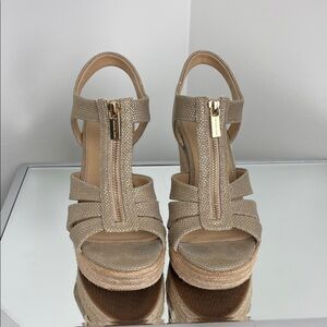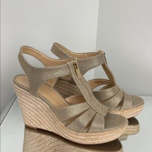 Michael Kors Gold Espadrille Wedge Sandals Size 8.5
