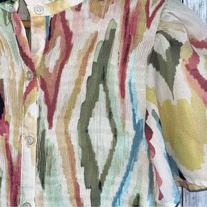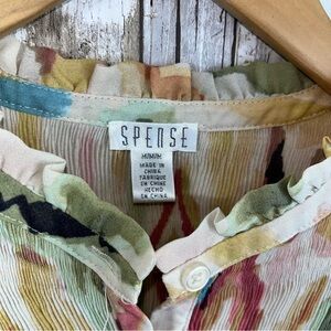 Spense Smocked Abstract Pint Print Button Front Blouse
