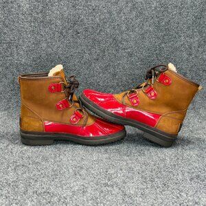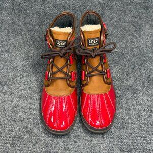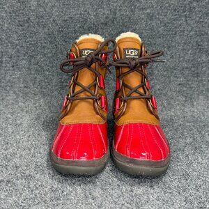UGG Cecile Waterproof Duck Boots Women's Size 6 Brown Red Patent Leather Ankle
