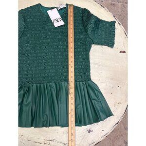 Zara Green Smocked Short Sleeve Peplum Top Women's M NWT