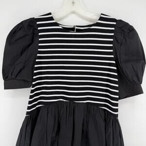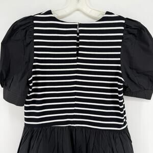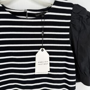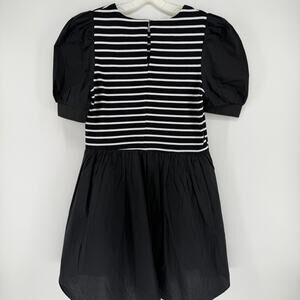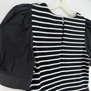 The English Factory High Low Knit Combo Dress Puff Sleeve Black White Small