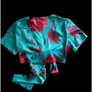 Tropical and beautiful colors! Floral Maxi with wrap slit. Elastic waist and matching wrap top. Vacation vibes! No brand or size tags. Please refer to measurements.