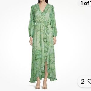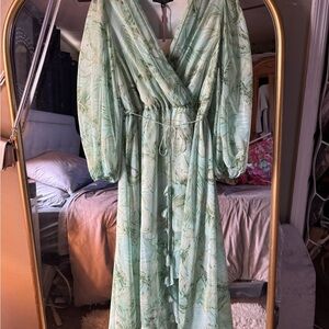 Step out in style with this elegant Alex Marie Hallie palm print green maxi dress. Perfect for any occasion, this dress offers a flattering fit and a chic look for the beach, cruise vacation, spring / summer wedding.