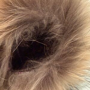 Genuine pink leather glove with raccoon fur cuff and fur lining