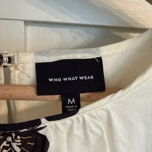 WHO WHAT WEAR charming blank and white Floral Long baby doll cotton dress