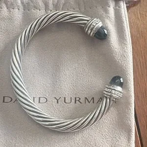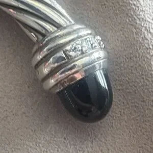 David Yurman Cable Sterling Silver Black Onyx with diamonds bracelet like new. Size Medium. 7 mm width. $479 MSRP.