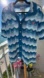 Stylish waves of blue and white knit CASSBLANCA crochet knit short sleeve cardigan with a wave pattern. Features button-up front - with pearl buttons and short sleeves. Worn just a couple of times ... just cleaned from the cleaners - size small - measures approximately armpit to armpit 21" with an extra 2" stretch. Top of shoulder to length measures approximately 28".