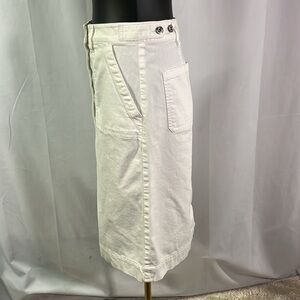 LAUREN Ralph Lauren White Button Front Denim Midi Skirt