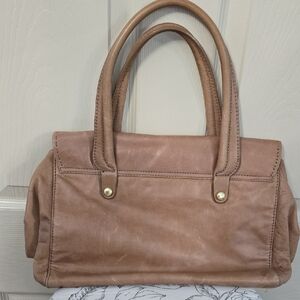 Chic leather satchel with gold-tone hardware. Features a secure clasp and dual handles. Perfect for everyday elegance.