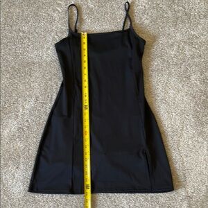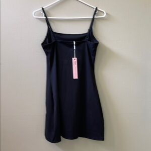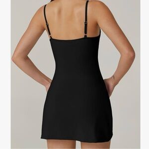 NWT QINSEN Women's Spaghetti Strap Tennis Dress with Shorts Workout Side Slit Active Black Golf Dress Size Small