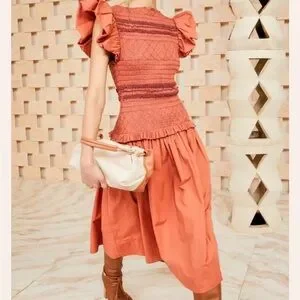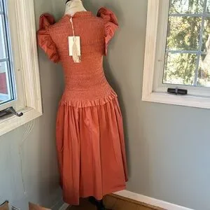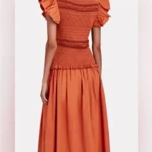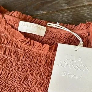 Ulla Johnson Madeline smocked body midi dress NWT size 6 in color clay