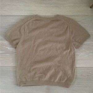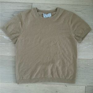 Chic camel knit cashmere sweater with short sleeves. Ideal for everyday style.