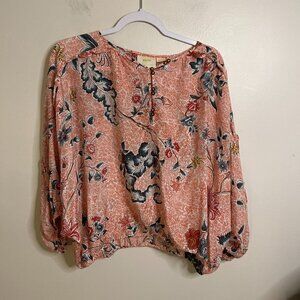 Anthrop[ologie Maeve Letizia Blouse Top Floral ruffle Dolman Henley Size M