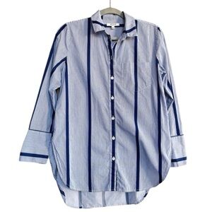 MADEWELL Striped Top Button-Down Tunic Shirt Size Small Navy Blue White