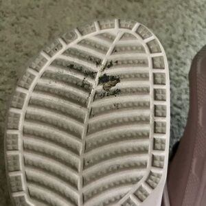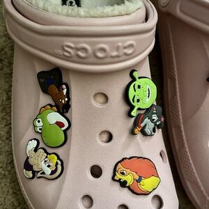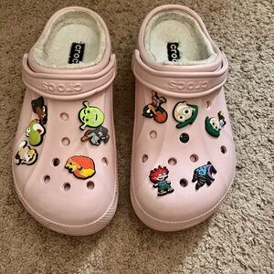 Crocs size women’s 11 in good used condition. Has lining on the inside. Little to no markings as pictured. Comes with the Jibbitz shown.